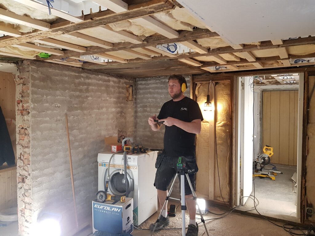 Emil var lite lättad när vi åkte att renoveringen gick mot sitt slutskede. Lilla renoveringen av ett rum i källaren slutade med totalrenovering av hela källaren. Varit Tompisens andra hem ett tag nu.