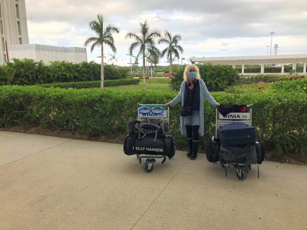 När vi landade i Cancun, åkte vi in i tullen. Dom plockade ur våra väskor och undrade om alla konstiga saker vi hade med oss. Inga kläder (förutom fårskinnstofflorna) utan bara massa bröte i deras ögon. Klarade oss igenom efter lite tjöt……….ofarliga idioter tänkte dom nog.