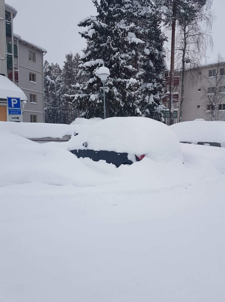 Här har det varit snöstorm! Härlig puderåkning idag på morgonen!