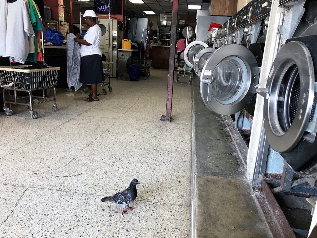 Utanför tvättomaten.
