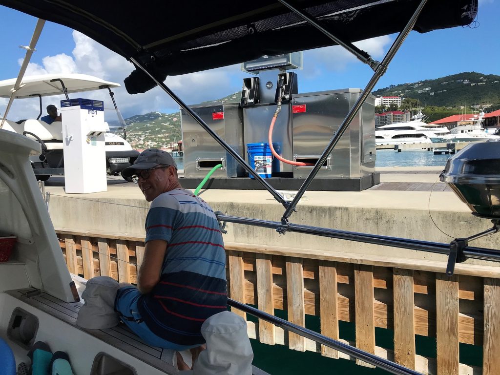 När inte paketet kom lämnade vi St Thomas och seglade till ön St John på fredagen. Kände mig riktigt nöjd då jag la till och ifrån själv vid bensinstationen. Vi är ju aldrig inne i hamnar så det blir ju aldrig tillfälle att öva. Asta är ju en liten ”pråm” mer som inte är så lätt att manövrera i trånga utrymmen. Tompi har det i sig och mycket lugnare medans jag får öva mig.