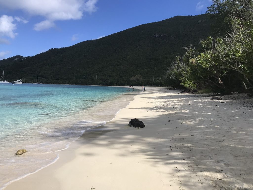 Får berätta om alla roliga saker som hänt i veckan. Första viken vi ankrade i när vi kom hit till USVI låg precis jämte flygplatsen med en jättefin strand och universitet inpå. Jäkla fallvindar på natten men kristallklart vatten.