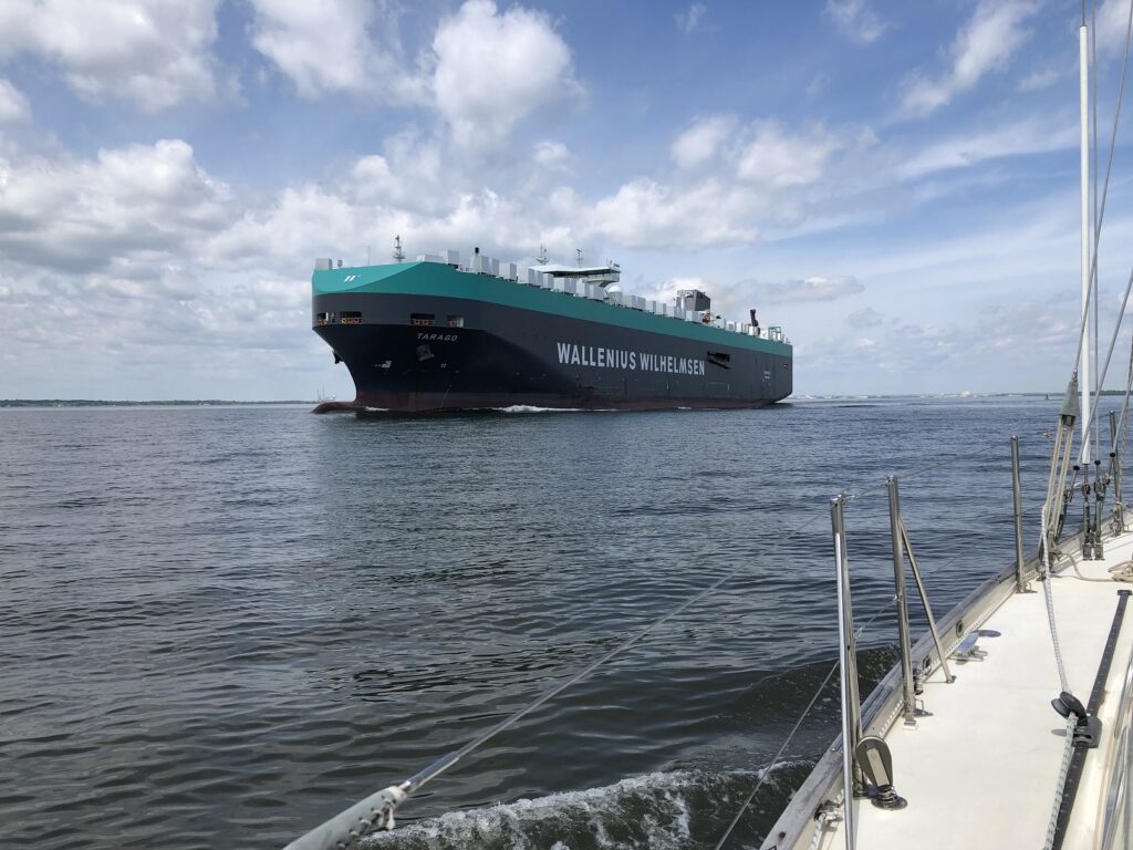 Mötte stora fartyg i farleden in mot Baltimore