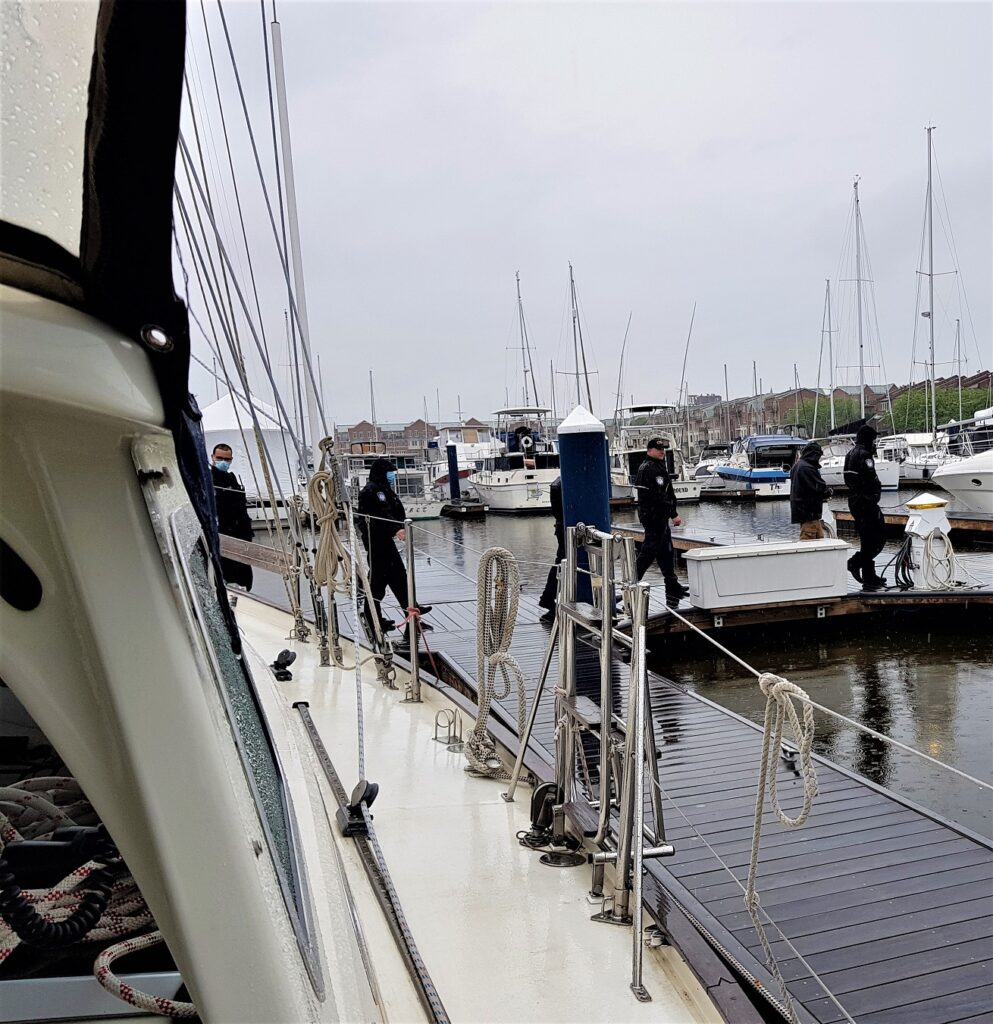 Kontroll av våra papper då dom hört vi anlänt till Baltimore