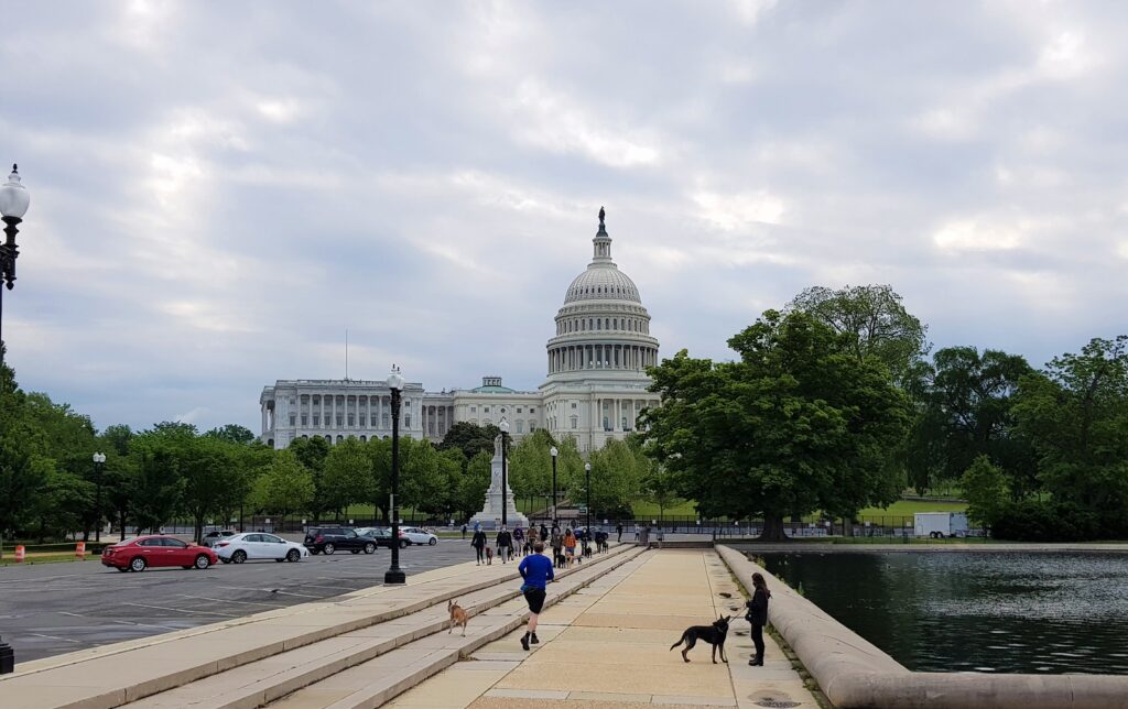 På lördagen tog vi tåget till Washington DC, mindre än en timme tar tåget. Turistade och blev imponerade av stadens alla vackra byggnader. Mycket har ändrats efter 6 januari i år runt Capitolium.
