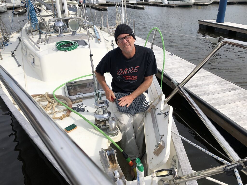 Ligga i hamn är inte riktigt vår melodi men när man skall galva om kättingen så känns det tryggast att ligga i hamn. Blåst en hel del så vi var nöjda med beslutet. Hittade en marina som har väldigt bra priser för att vara i USA, drygt 300 kr/natten om man signar upp för en vecka. Många som bor i sina båtar här, sköna människor och hjälpsamma till max. Sitter nu i marinans lounge med en tjej från en annan båt o småpratar. Dom har bott här i 4 år och precis köpt en ny båt och skall segla jorden runt.