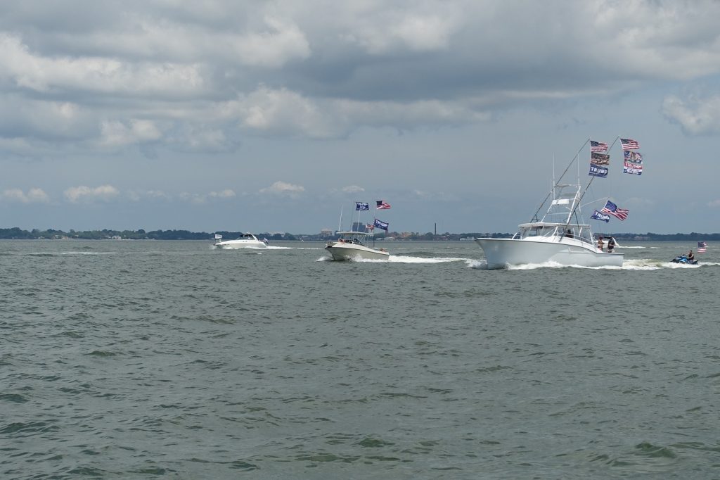 Plötsligt kommer mängder av båtar mot oss, Trump anhängare. Måste varit något speciellt då dom låg i rader och körde mot inloppet (och vi på väg ut)