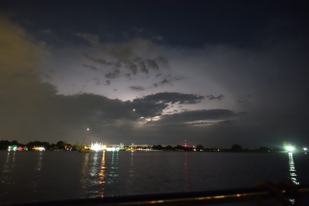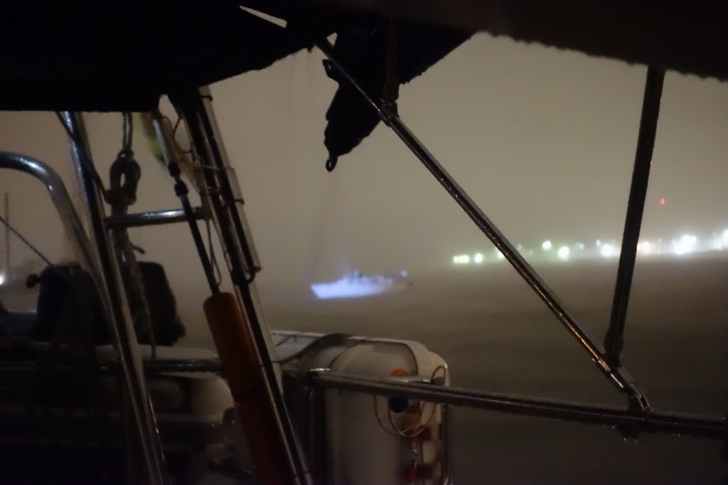 Vi vaknade till på natten av en tuta. Katamaranen jämte oss tutade. Vinden och regnet bara öste ner. Ser då en segelbåt komma farande, draggande. Efter han passerat oss får hans ankare fäste igen och sätter sig fast. Det roliga var att han vaknade nog inte utan vi ser han på morgonen öppna sina luckor och sticka ut huvudet och titta till. Tur det gick bra, dels han inte stötte till någon båt på sin nattliga färd eller skadade sig själv.